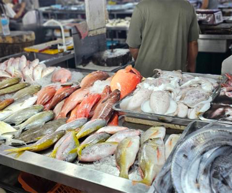 Step into the wet market and you are greeted with gleaming seafood. Live crabs, clams spitting saltwater, tuna steaks cut thick for grilling, clear-eyed lapu-lapu perfect for steaming.