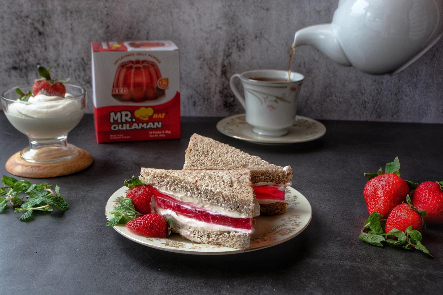 One well-loved option is the jelly-and-cream sandwich. Simply layer soft Strawberry gulaman and cream between slices of white bread. The result is a chilled, creamy merienda that feels nostalgic yet new. Some parents even roll it up to make jelly “sushi,” adding a playful touch that kids enjoy.