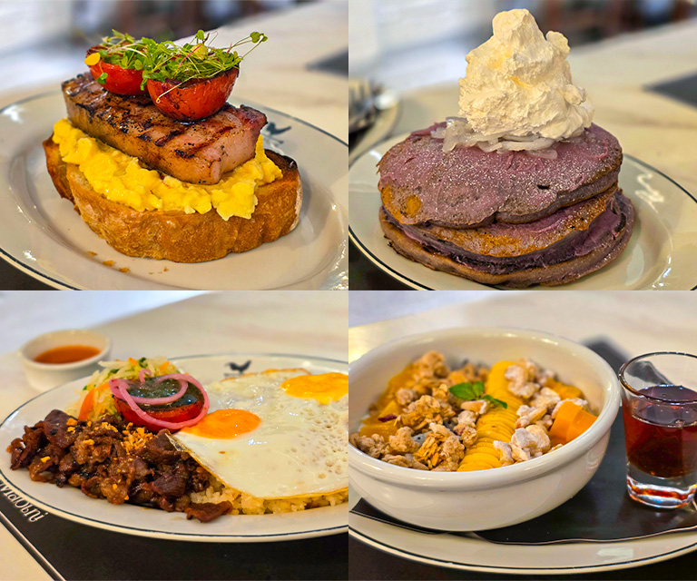 But the real star is the Ube Pancake, a fluffy stack dyed in that unmistakable violet hue. The pancakes are soft and aromatic, carrying the nutty sweetness of ube without tipping into dessert territory. Paired with syrup and butter, they strike a careful balance between nostalgic and indulgent.